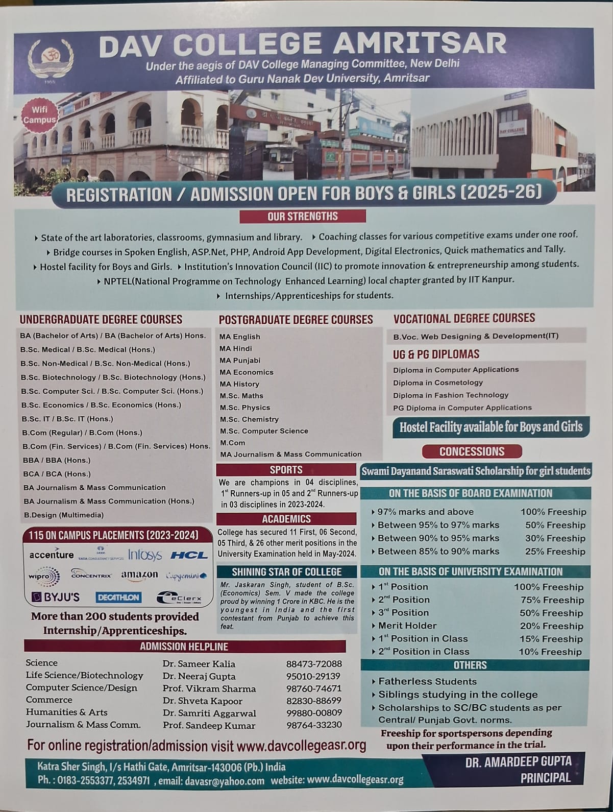 DAV COLLEGE, Amritsar announces the